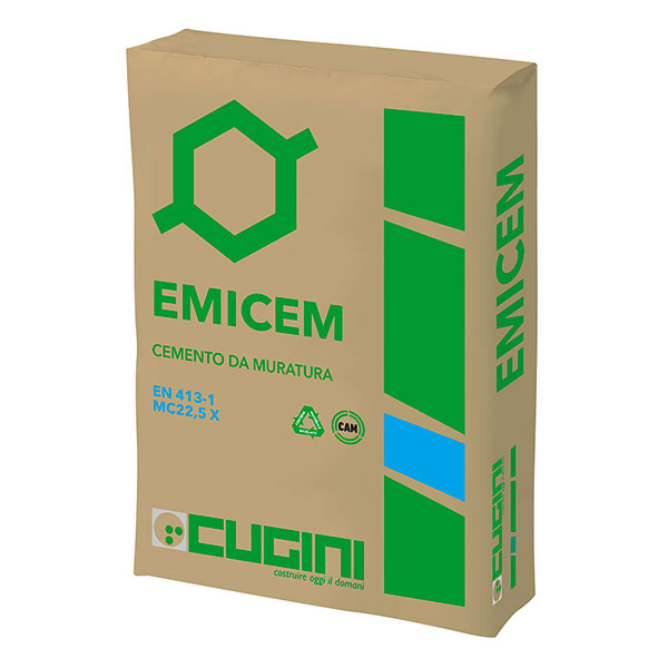 EMICEM è un cemento conforme alla norma UNI EN 413-1 “Cemento da muratura” ed è classificato come MC22,5 X. Il prodotto è utilizzato per la produzione in cantiere di sottofondi, massetti tipo sabbia e cemento e malte per murature anche portanti; inoltre, grazie alla sua elevata resistenza, è possibile realizzare anche calcestruzzi dotati di buone proprietà meccaniche da impiegarsi per lavori non strutturali.