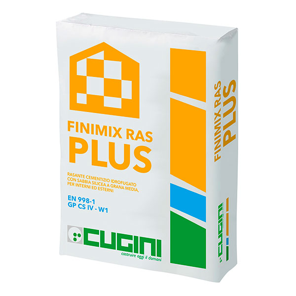 FINIMIX RAS PLUS è una malta premiscelata a secco composta da: cemento, calce idrata, sabbie silicee di origine fluviale ed additivi che migliorano la lavorabilità, l’adesione e la protezione agli agenti atmosferici.