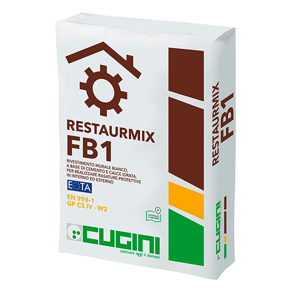 Rivestimento murale bianco, a base di cemento e calce idrata, per realizzare rasature protettive in interno ed esterno.