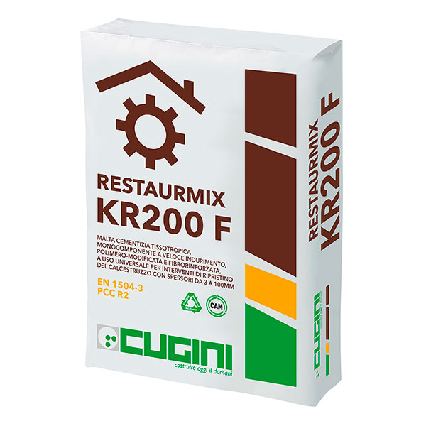 RESTAURMIX KR200 F risponde ai principi di utilizzo prescritti dall’EN 1504-9 ”Prodotti e sistemi per la protezione e la riparazione delle strutture di calcestruzzo - Definizioni, requisiti, controllo di qualità e valutazione della conformità - Principi generali per l’utilizzo dei prodotti e dei sistemi”, e ai requisisti dell’EN 1504-3 “Prodotti e sistemi per la protezione e la riparazione delle strutture di calcestruzzo - Definizioni, requisiti, controllo di qualità e valutazione della conformità – “Riparazione strutturale e non strutturale”, come malta di ripristino di tipo PCC e classe R2 in accordo al principio 3 “Ripristino del Calcestruzzo” (metodo 3.1) e al principio 7 “Conservazione o ripristino della passività” (metodi 7.1 e 7.2).