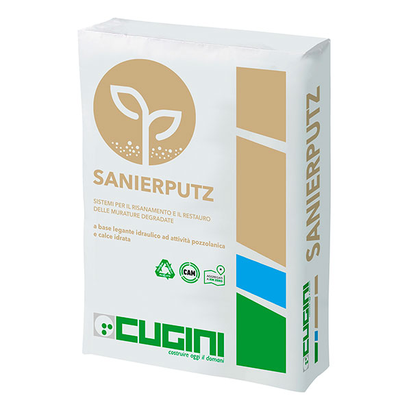 SANIERPUTZ RINZAFFO è una malta premiscelata a secco di colore nocciola chiaro, a base di sabbie selezionate, fibre, speciali additivi, legante idraulico bianco e bio-pozzolana che conferisce un’incrementata resistenza all’attacco chimico (solfati, piogge acide, ecc.) rispetto alle normali malte. La particolare formulazione permette di ottenere una buona resistenza ai sali disgreganti e un’ottima adesione a murature di mattoni, laterizi e pietra. Il suo impiego, oltre a promuovere l’aggrappo tra la muratura esistente e il corpo d’intonaco, contrasta il passaggio dei sali idrosolubili presenti nell’umidita di risalita capillare ed elimina la formazione di efflorescenze saline. L’intonaco è conforme alla norma UNI EN 998-1 ed è classificato come GP CS IV – W2. Il prodotto è stato studiato per essere utilizzato come strato d’aggrappo e barriera salina nel ciclo SANIERPUTZ, specifico per il risanamento di murature vecchie o recenti, degradate dall’umidità di risalita capillare, o per applicazioni in bioedilizia. In situazioni di particolare degrado con forte presenza di sali o dove si vuole ottenere una maggiore durabilità dell’estetica delle superfici, è consigliabile trattare il supporto con PRIMER ANTISALE.