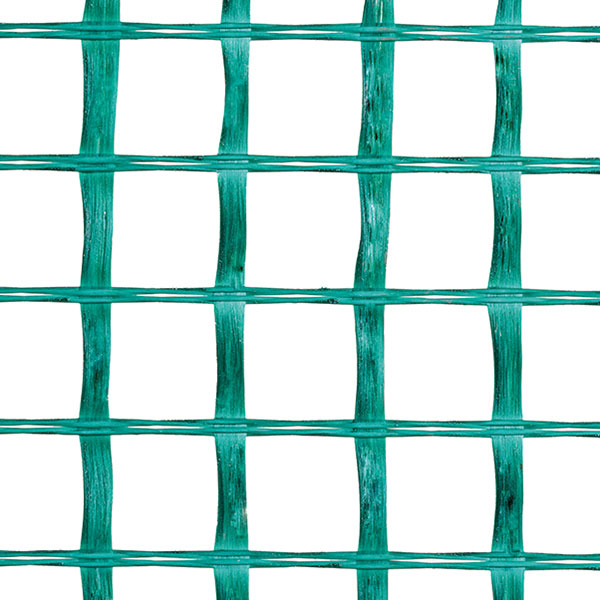 Rete in GFRP (Glass Fiber Reinforced Polymers) costituita da trefoli in fibra di vetro AR, alcali-resistente, completamente impregnati con una resina termoindurente. Ordita da cantra, tessuta a telaio e successivamente impregnata immergendo il tessuto in un bagno di resina. La resina viene successivamente totalmente reticolata per ottenere il prodotto finito.